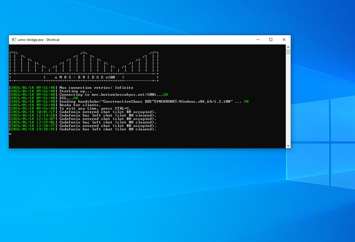 uMRC lets you run Multi-Relay Chat on your BBS without having to install and maintain a Mystic BBS instance and Python. As long as your BBS is capable of running 32-bit doors, then you and your users can participate in MRC.
